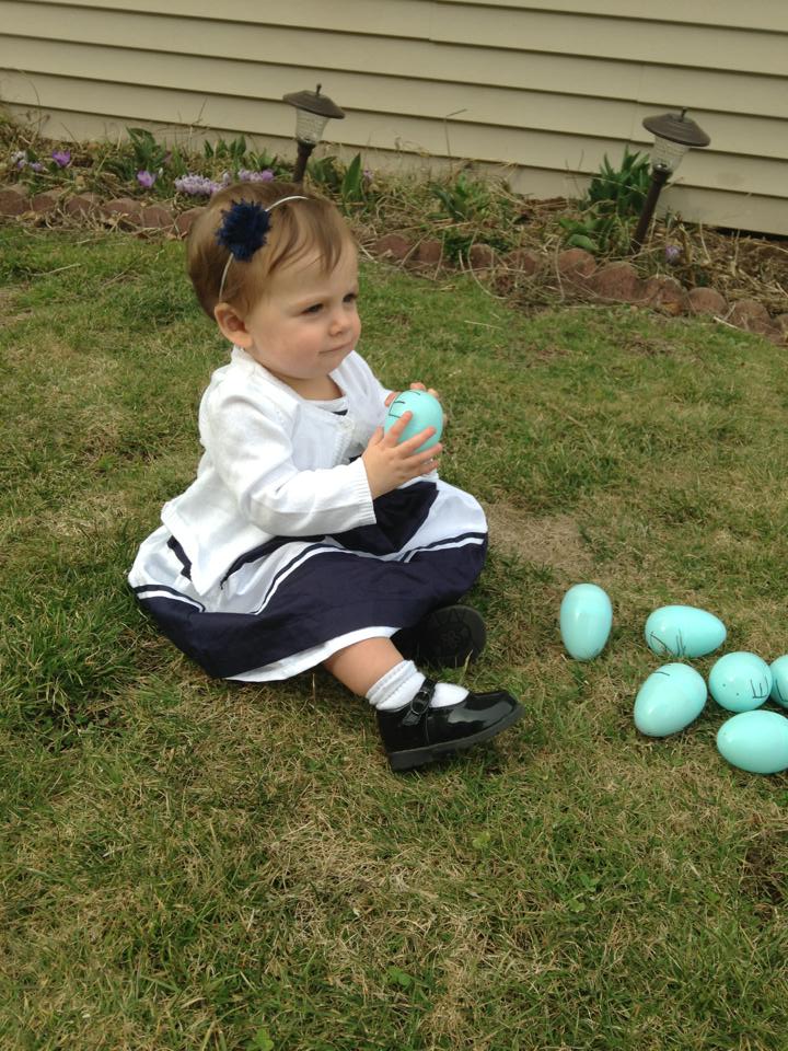 We also attended an Easter egg hunt at the local school, hosted by a mom's group. That was slightly less successful of a venture. My daughter was overwhelmed and seemed quite surprised that there were so many people of her own size there. She was intrigued by the older kids, friendly and outgoing with the adults, but nervous of her peers.